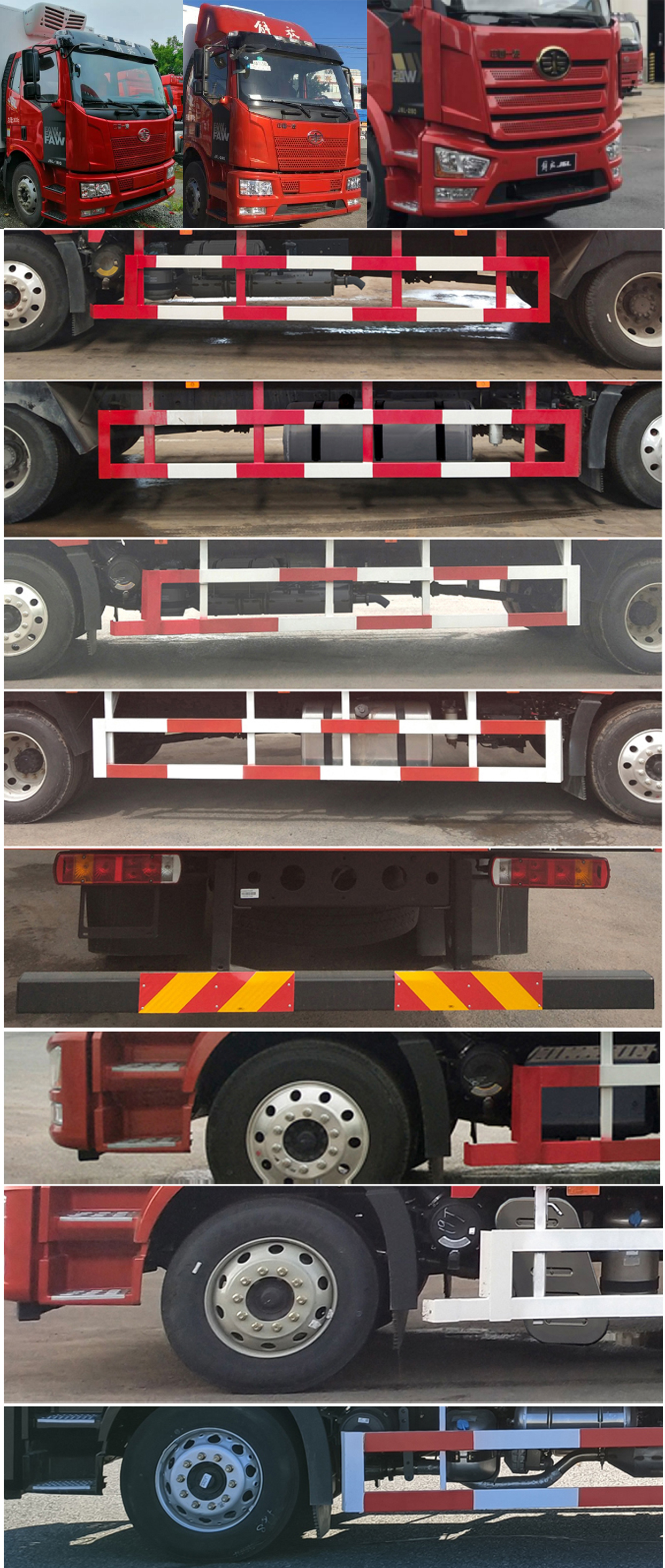 選用底盤4400,4700,5000,5300軸距.車廂頂部封閉,不可開啟.隨底盤選裝平頂駕駛室,選裝導流罩,選裝前圍和燈具,選裝無遮陽罩,選裝液壓尾板,尾板收起狀態的水平長度295mm,尾板質量為550kg,安裝單側門,選裝雙側門,選裝對開門.可選裝功率相當的其他制冷機組,內置制冷機組,安裝符合QC/T449-2010規定的行駛溫度記錄儀.長度尺寸對應關系:8560=1400+4700+2460(6200mm廂長),9160=1400+5000+2760(6800mm廂長),9160=1400+5300+2460(6800mm廂長),8150=1400+4400+2350(5800mm廂長)側面防護裝置的橫桿及縱梁材料為Q235,螺栓連接,后下部防護裝置的橫梁及縱梁材料為16MnREL,螺栓連接,斷面尺寸120×60mm,離地高度為450mm.隨底盤前軸選裝盤式制動器,選裝限速裝置,限速89km/h.ABS防抱死制動系統生產廠家,長春瑞立科密汽車電子有限公司,型號:CM4XL.油耗申報值與發動機對應關系:25.6(CA4DK1-22E6,CA4DK1-22E61),26.3(CA4DK1-18E6),26.5(CA6DH1-24E6,CA6DH1-24E61),26.7(CA6DH1-26E61),安裝具有衛星定位功能的行駛記錄儀,駕駛室準乘人數3人對應額定載質量9900kg,駕駛室準乘人數2人對應額定載質量9965kg,隨底盤選裝油箱,選裝左置空濾,左置尿素罐,右置電瓶框,尿素罐,選裝方形后處理器和U型后處理器,選裝不包空濾側防護 |