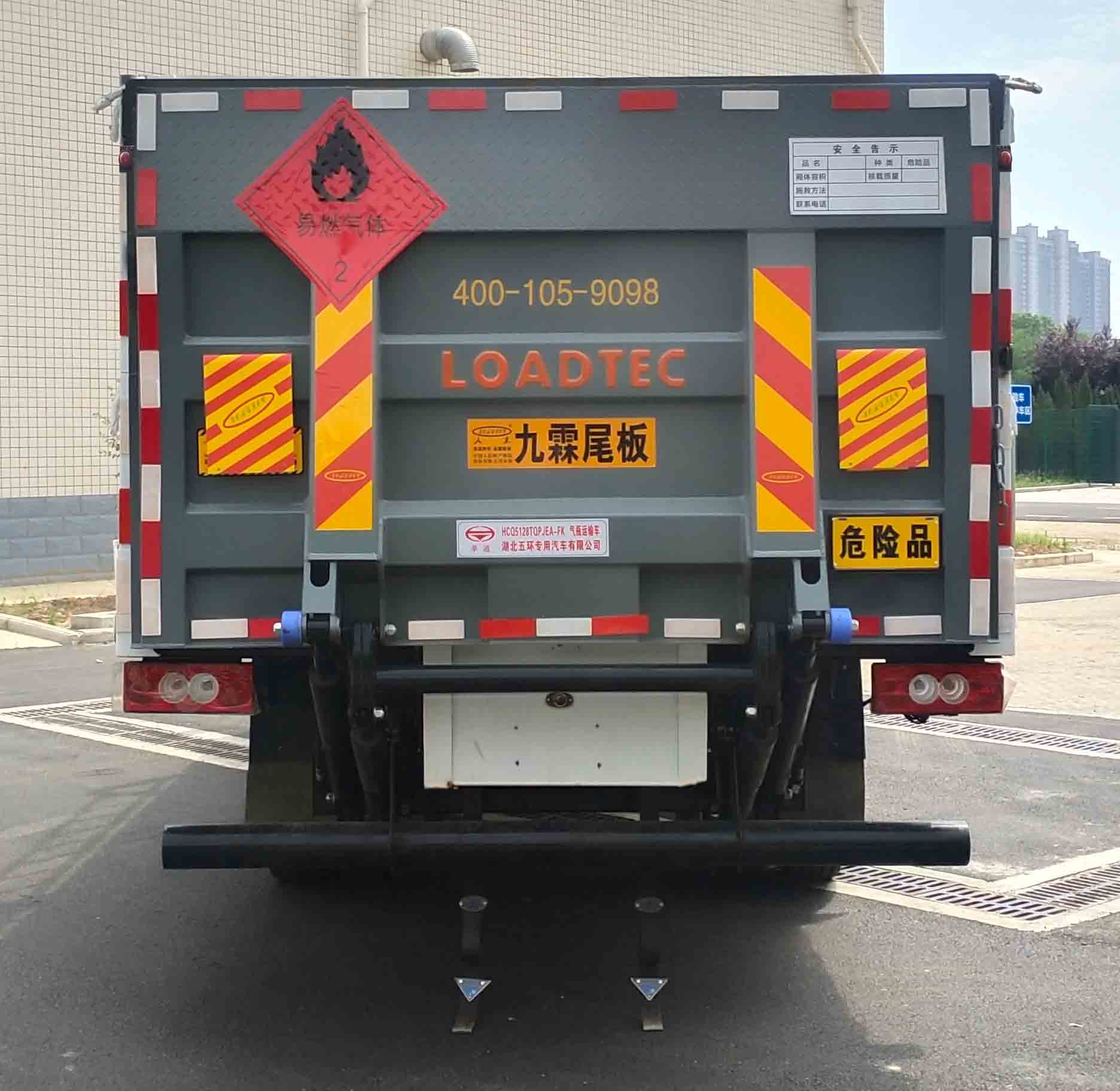 隨底盤選裝駕駛室;選裝貨廂形式;安裝起重尾板(收起狀態水平長度為300mm),尾板質量為450kg;該車用于運輸具有獨立容器(瓶)包裝的危險貨物類項號,2.1,2.2;該車為危險品貨物運輸車;僅采用前輪盤式制動器,前置排氣管,子午線輪胎,限速裝置的底盤,限速80km/h;轉向輪安裝爆胎應急防護裝置;發動機/油耗申報值(L/100km)對應關系為:F3.8NS6B156/16.20;該車安裝具有衛星定位功能的行駛記錄儀;ABS系統型號:ABS-VI.E;生產企業:廣州瑞立科密汽車電子股份有限公司.ABS系統型號:ABS-E;生產企業:威伯科汽車控制系統(中國)有限公司;側面防護及后下部防護裝置材料材質:Q235,連接方式:焊接連接;后下部防護圓形后防護;后下部防護裝置斷面尺寸為:Φ120mm,離地高度:310mm;該車型可選裝直接供電ETC車載裝置. |