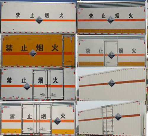躍進小福星腐蝕性物品廂式運輸車是危險品廂式運輸車的一種,國六排放.廂體頂部密封,不可開啟。采用柳機112馬力汽油發動機,5檔變速箱,2650軸距,前橋1.5噸后橋3.0噸,185R15后雙胎,S70單排駕駛室。箱內尺寸2800,3300×1750×1250,1550,1750(mm),氣剎,空調,電動門窗。其他按國家腐蝕性物品廂式運輸車標準執行(底盤前盤(碟)后轂、電子限速器、行駛記錄儀、ABS),排氣管前置。有燃油和環保公告,上戶無憂。類項號:8類 . 躍進小福星腐蝕性物品廂式運輸車外板采用1mm厚冷軋板有一次性成型的百葉窗,內飾為導電性能良好的鋁板有透氣孔,內襯為矩形管骨架牢靠穩定,內部填充為透氣防潮阻燃的擠塑板,廂體外部上下鋁合金型材包邊,底板和車廂前下部鋪橡膠皮,后門雙開,右側選裝側開門,內部有固定貨物的臥環,外部有靜電帶、滅火器、防火罩,廂內安裝煙霧報警器和門防盜報警器),滅火器2只,車廂黃色,有危險標志,貼有反光標識。
