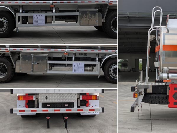 東風錦程小三軸鋁合金運油車采用東風汽車公司本部運油車專用底盤(二類國六排放底盤),玉柴245馬力發動機,康明斯245馬力發動機,八檔變速箱,1995+5000軸距,前橋3.6噸后橋10.0噸,295/80R22.5真空胎,齊星V6駕駛室,前盤制動,ABS,行使記錄儀,剎車自調臂,電動門窗,空調,限速器,排氣管前置,轉向輪安裝輪胎爆胎應急防護裝置,后軸裝配空氣懸架。該鋁合金運油車運輸介質為柴油,煤油,汽油,不超重,上戶無憂。罐體有效容積20.3立方米.