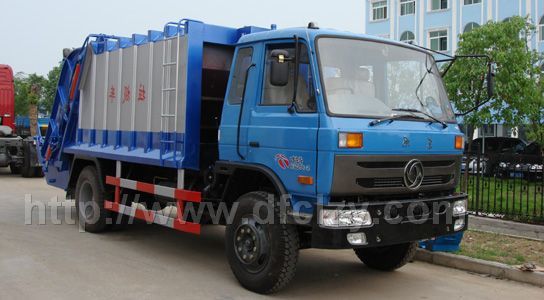 | 東風153壓縮式垃圾車采用東風本部153底盤。有效容積8-12方,液壓操作(可選裝電液一體,電控操作裝駕駛室內),可選裝后翻轉(垃圾桶、推鏟)。 |