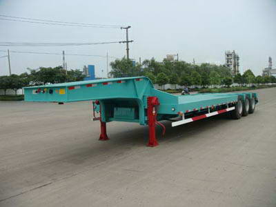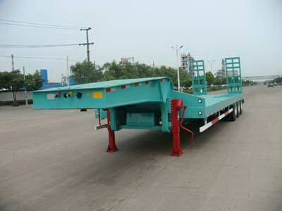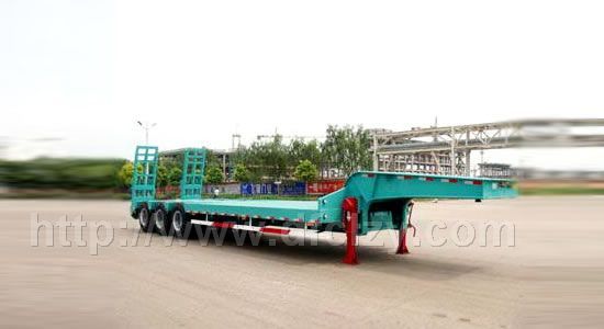 | 工程機械運輸低平板半掛車5承載面高度1000 mm,。選裝不露輪胎時承載面高度還可為1140 mm。僅可運輸不可拆解物體。爬梯為選裝件,不裝爬梯時外形高1850 mm。外形長為12500時對應軸距7930+1310+1310,整備質量10000,載質量29800。 |