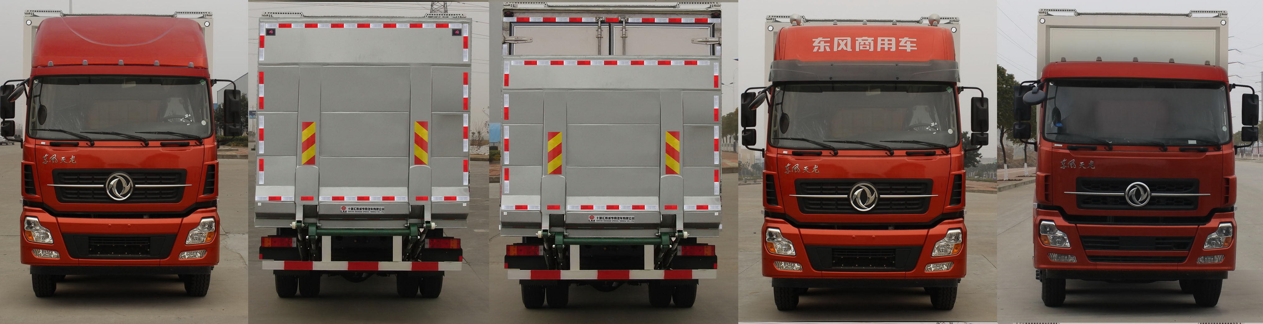 1.廂體頂部封閉,不可開啟,選裝兩種升降尾板形式;2.駕駛室頂部導流罩為選裝件;3.側防護:材質Q235,螺栓連接;后下防護:材質Q235,螺栓連接,斷面尺寸120X60mm,離地高度540;4.應裝有具有衛星定位功能的行駛記錄儀;5.裝有ABS,ABS型號:3631010-C2000,生產廠家:東風電子科技股份有限公司制動系統公司;6.隨底盤選裝平頂駕駛室,高頂駕駛室頂部氣喇叭為選裝件;7.尺寸對應關系(總長=前懸+軸距+后懸):11990=1460+1850+4600+1350+2730=1460+1950+4500+1350+2730=1460+1950+4250+1350+2980,11190=1460+1850+3800+1350+2730,10940=1460+1850+3800+1350+2480;8.選裝平板及瓦楞板箱體,選裝兩截式箱體. |
