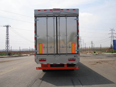 箱體頂部封閉兩翼可開(kāi)啟;ABS系統(tǒng)生產(chǎn)廠家為廣州市科密汽車制動(dòng)技術(shù)開(kāi)發(fā)有限公司、型號(hào)為4S/2M;防護(hù)材料均為Q235-A,防護(hù)均采用焊接連接,后部防護(hù)裝置的斷面尺寸為120毫米×50毫米,離地高度為510毫米。 |
