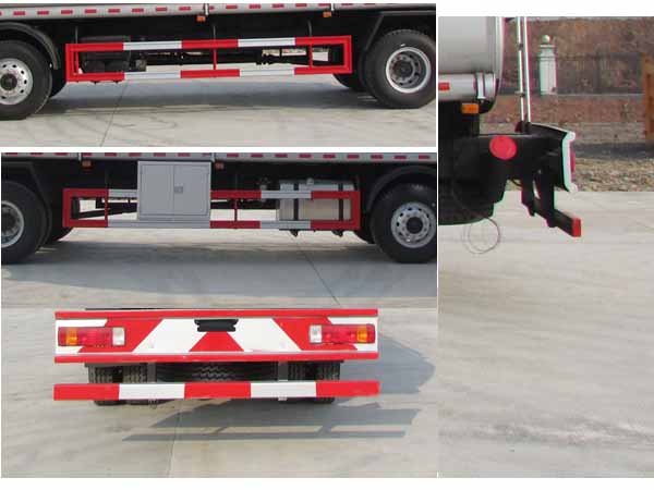 運(yùn)輸介質(zhì):汽油;類項(xiàng)號(hào):3,密度:700千克/立方米;罐體有效容積:20.3立方米,罐體外形尺寸(長(zhǎng)×寬×高)(mm):8100×2360×1560。2,側(cè)防護(hù)左右對(duì)稱采用冷彎型鋼/Q235,螺栓連接。后防護(hù)采用冷彎型鋼/Q235,焊接,截面高100mm,截面寬50mm,下邊緣離地高540mm。3,隨底盤選裝駕駛室;僅選用子午胎,限速裝置,輔助制動(dòng)裝置和前盤制動(dòng)器的底盤;安裝具有衛(wèi)星定位功能的行駛記錄儀;ABS型號(hào)/生產(chǎn)廠家:VIE ABS-II/上海萬(wàn)捷汽車控制系統(tǒng)有限公司;僅用發(fā)動(dòng)機(jī)分別對(duì)應(yīng)的油耗值為:CA6DF4-24E4,BF6M1013-24E4,CA6DF4-22E4,BF6M2012-22E4,BF6M1013-26E4/37.09,36.84,37.04,36.95,36.95。 |