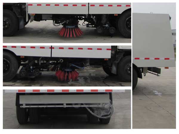 9、左右立掃為單掃盤,減少了掃刷的數量和掃刷消耗量,能降低使用成本。掃刷上加裝噴水裝置,用于噴霧降塵。左右立掃分開控制,可實現右掃和全掃等不同的作業模式。