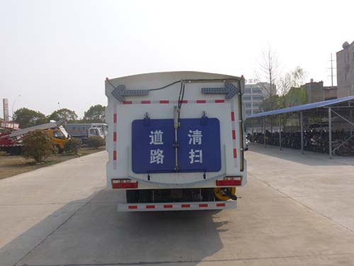 9、駕駛室手動按鈕式液壓系統驅動左右立掃升降、左右掃盤旋轉、吸嘴升降、垃圾箱后門開閉、垃圾箱傾翻復位等機械動作。