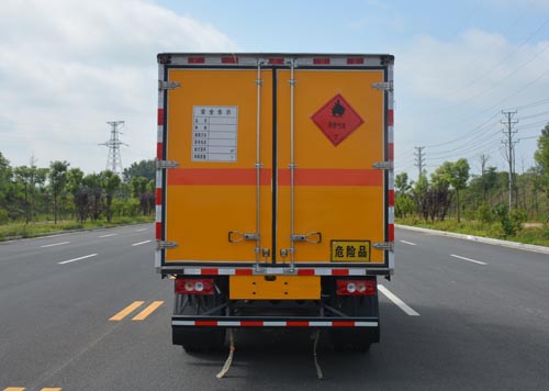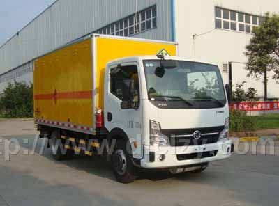 東風銳鈴防爆車\民爆車\炸藥運輸車廂體外飾冷軋鋼板,內飾防靜電鋁板,底板鋪防靜電膠板,側壁設防雨通風窗口,帶捆綁固定拉環,煙霧感應器,防盜報警開關,靜電帶,滅火器2只,車廂黃色,有危險標志,貼有反光標識,廂體右側開側門,可選裝無側門廂體、帶隔倉箱體。駕駛室可選裝白色或珠光鉬紅,箱長3.96米。其他按國家爆破器材運輸車標準執行(底盤前盤(碟)后轂、電子限速器、行駛記錄儀、ABS)。