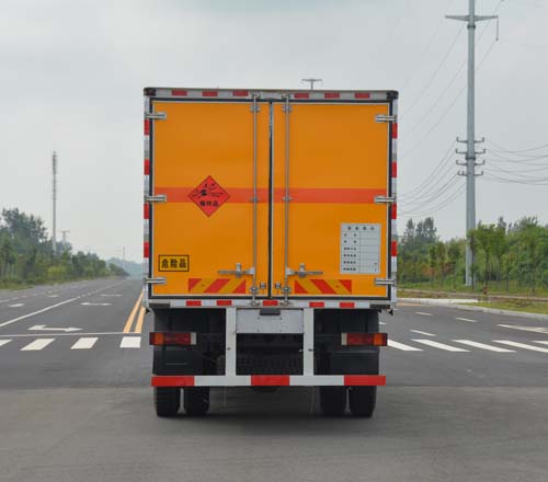 重汽斯達-斯太爾牌防爆車\民爆車\炸藥運輸車廂體外飾冷軋鋼板,內(nèi)飾防靜電鋁板,底板鋪防靜電膠板,側壁設防雨通風窗口,帶捆綁固定拉環(huán),煙霧感應器,防盜報警開關,靜電帶,滅火器2只,車廂黃色,有危險標志,貼有反光標識。