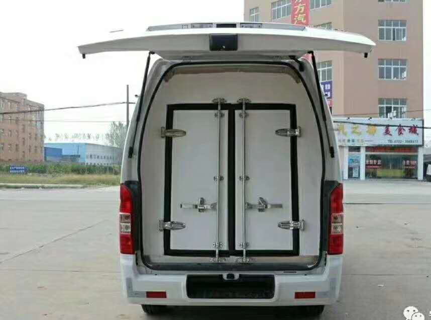 福田風景G7國六面包冷藏車/食品運輸車標準配置:國內知名廠商生產的玻璃鋼各板塊間用高強度結構膠粘接,配以鋁合金型材鉚接成整體,中間聚氨脂泡沫,保溫箱體內頂部安裝頂燈,安裝排水孔。廂頂封閉,后開門,-5度或-15度制冷機組,制冷效果顯著。不銹鋼門鉸鏈及栓桿。