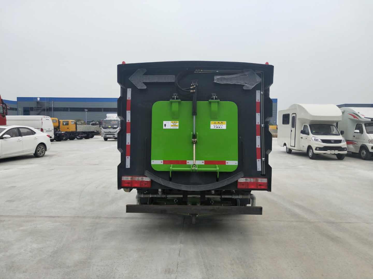 6、垃圾箱采用雙層內膽不銹鋼結構,容積4m³,內部加裝過濾網板,能有效地防止樹葉、塑料袋之類的輕飄物堵塞風口及灰塵的排出。內置噴霧壓塵裝置,最大限度的利用了垃圾箱裝載垃圾的空間。廂體采用傾翻卸料。