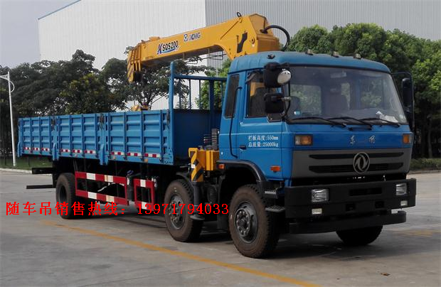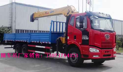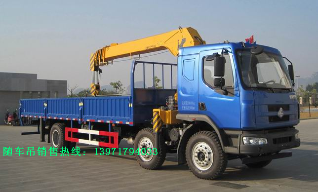 隨車吊全稱隨車起重運輸車,是一種通過液壓舉升及伸縮系統來實現貨物的升降、回轉、吊運的設備,通常裝配于載貨汽車上。一般由載貨汽車底盤、貨廂、取力器、吊機組成。載貨汽車底盤可選東風、解放、歐曼、重汽斯太爾等輕,中,重卡。吊機按廠家可分為鐵運、徐工、江環,宇通重工,飛濤、石煤等,按吊機類型分為直臂式和折臂式(三節,四節臂),按噸位分為2噸、3.2噸、5噸、6.3噸、8噸、10噸、12噸、16噸、20噸.