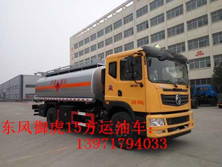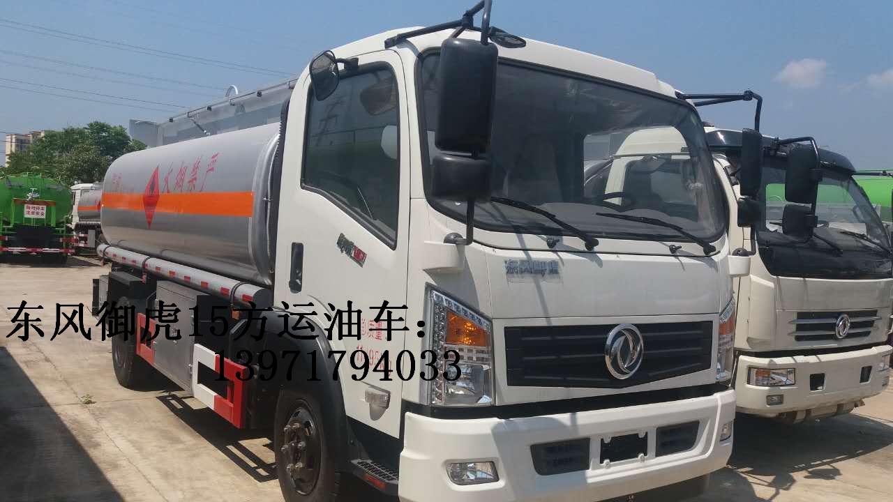 東風御虎15方國五單橋運油車采用東風公司本部暢銷產品:東風公司運油車專用底盤(二類國五排放底盤),2080寬電動玻璃,玉柴或康明斯國五發動機,軸距3950mm,前盤制動,ABS,行使記錄儀,限速器。9.00鋼絲胎,排氣管前置。有環保和燃油公告,上戶無憂,該運油車為汽油介質。選裝東風145,東風153,東風D912,D913(仿天錦)駕駛室等。