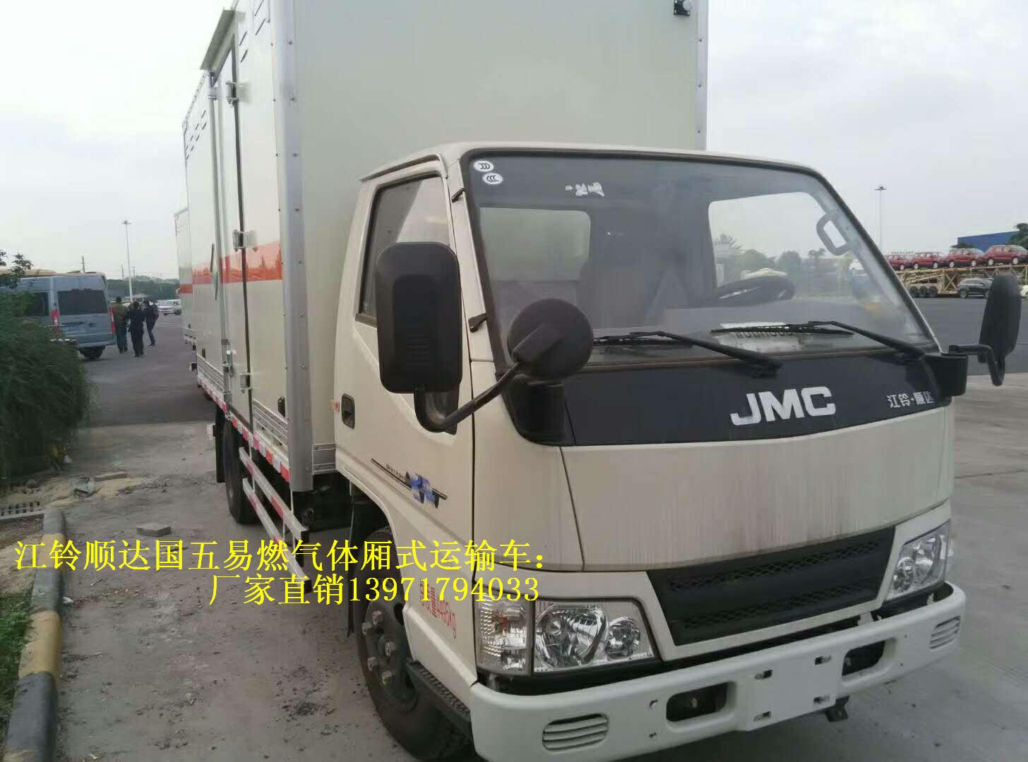 江鈴順達國五易燃氣體廂式運輸車上戶噸位2.7噸,國五排放.廂體頂部密封,不可開啟。僅采用江鈴115馬力發動機。箱內尺寸4200×1800×1960(mm),六擋箱,7.00R16鋼絲胎,氣剎,巡航/空調/中控鎖+電動車窗+遙控/方向助力。其他按國家易燃氣體廂式運輸車標準執行(底盤前盤(碟)后轂、電子限速器、行駛記錄儀、ABS),排氣管前置。有燃油和環保公告,上戶無憂。