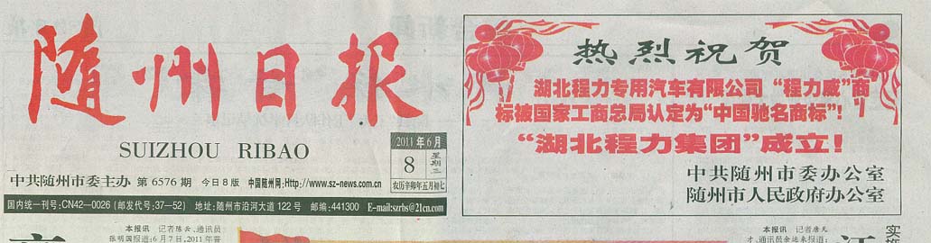 湖北程力專用汽車有限公司銷售部 2011年6月16日 |
