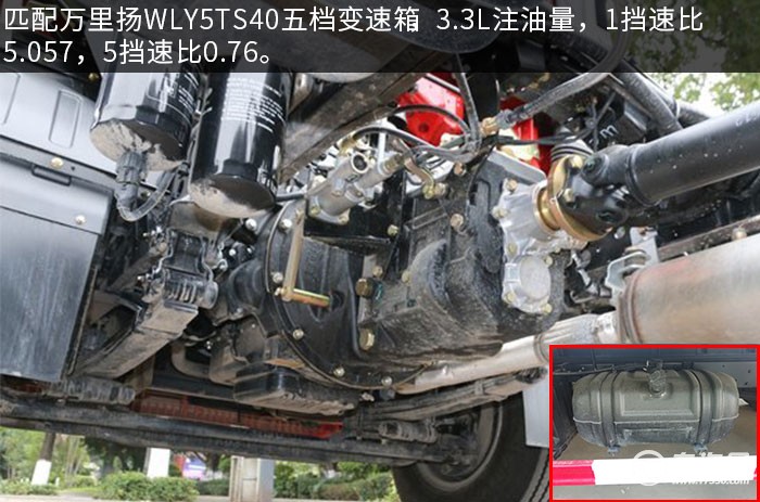 解放虎V國六4.2米易燃?xì)怏w廂式運(yùn)輸車排氣管為前置,配有防火帽。排氣制動(dòng)采用EGR+DOC+DPF技術(shù)路線,不需要燃燒尿素。配有ABS,帶前盤限速裝置,整車限速80km/h。匹配萬里揚(yáng)WLY5TS40五檔變速箱,3.3L注油量,1擋速比5.057,5擋速比0.76。采用短行程同步器,進(jìn)擋全同步,換擋更輕便。配備120L阻燃式塑料油箱。該車輪胎選用的是玲瓏輪胎,型號7.00R168PR的胎,3300mm軸距,采用前輪碟剎,5噸級青特1058后橋,速比為4.875。
