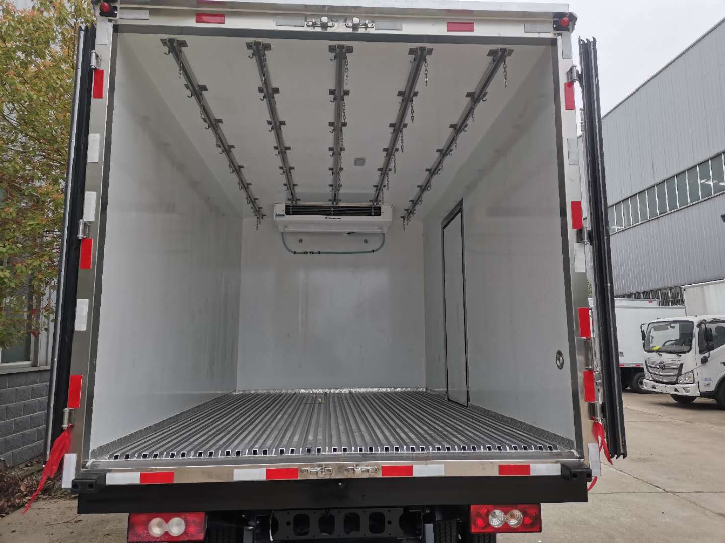 冷機的出風口一般在廂體前段頂部位置,如果沒有通風槽,1、貨物有水的時候不能有效及時排出,廂體底部貨物會造成霉變;2、當貨物裝滿時,冷機的冷風,只能在貨物最上面吹,廂體底部會慢慢升溫,有通風槽,冷風會吹向廂體后門,冷風隨之向下,通過通風槽,冷氣處于循環狀態;3、如果裝的貨物帶有大量熱氣,保溫箱熱氣很難揮發,利用通風槽帶走大量熱氣,同時最好中間放冰塊輔助吸熱,效果最好!冷藏車選裝通風槽不但能保證貨物有效的降溫,更有利節省油耗成本!