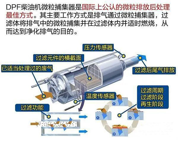 一.什么是DPF再生功能? 國六時代應(yīng)用的DPF就是顆粒捕捉器DPF(Diesel Particulate Filter),是一種安裝在柴油發(fā)動機排放系統(tǒng)中的陶瓷過濾器,它的主要作用是捕捉尾氣中的有害微粒,可以減少70%—90%的微粒物排放。在DPF中把收集來的尾氣、有害顆粒進行過濾、氧化的過程就叫做——再生。